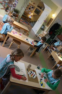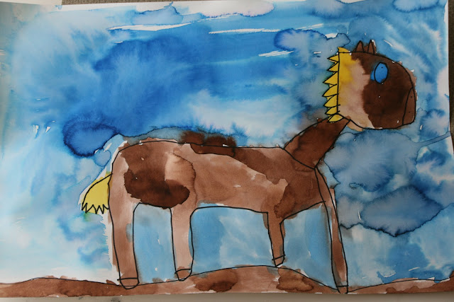 This is such a fun time of year, when all the children have had lots of opportunities to explore the media and are now ready to take them a little deeper. We were using liquid watercolor and experimenting with wet on wet painting and wet on dry.